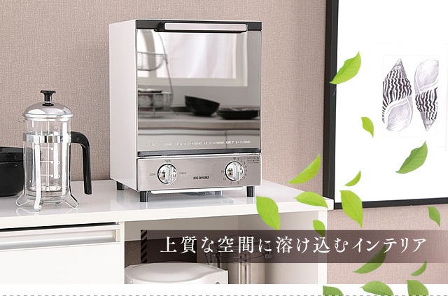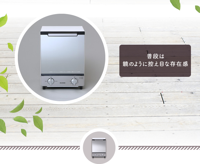 ミラーガラス調でキッチンやお部屋に馴染むインテリア性の高いデザイントースターです。