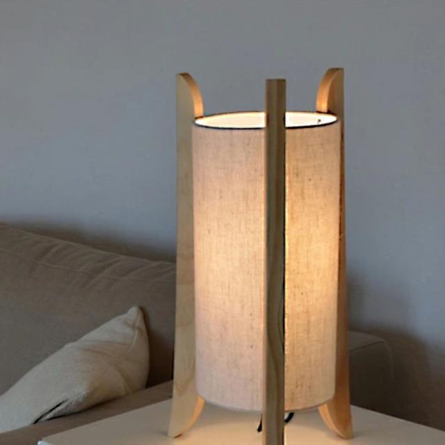 落ち着いたナチュラルカラーのリネン生地が、柔らかな灯りを作り出してくれます。シンプルなデザインながら、天然木とリネンの素材感を感じられる優しいデザインなので、点灯時・消灯時共に自然素材を楽しむことができます。