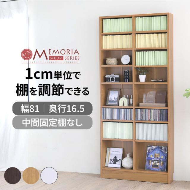 MEMORIA 本棚 薄型 オープン書棚 幅81 棚板が1cmピッチで調整できる メモリアシリーズ まるで図書館 スリム 大容量 文庫本 コミック(代引不可)【送料無料】