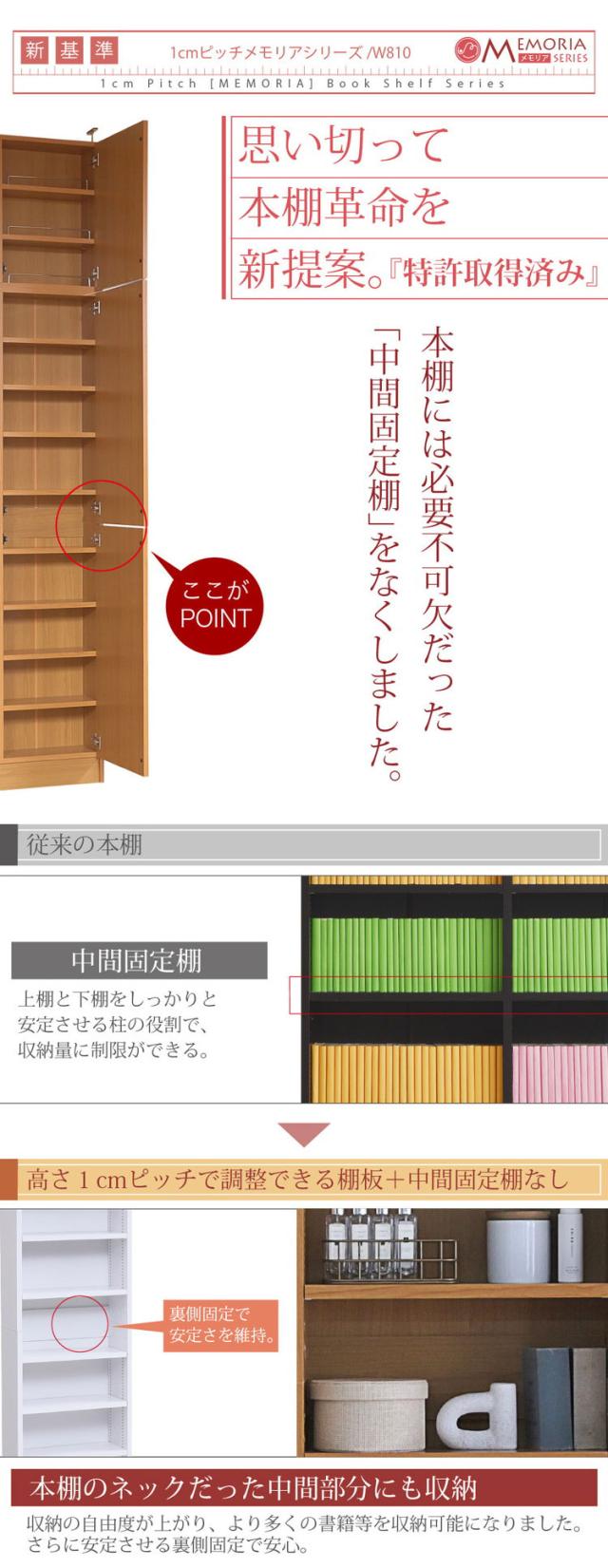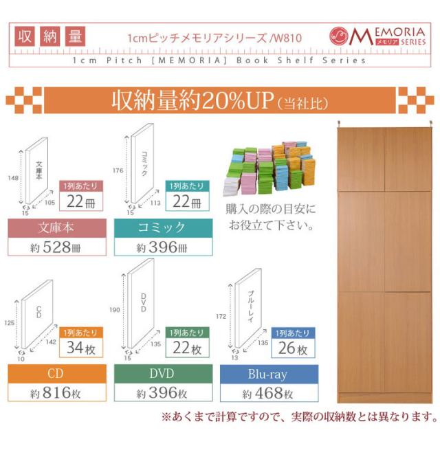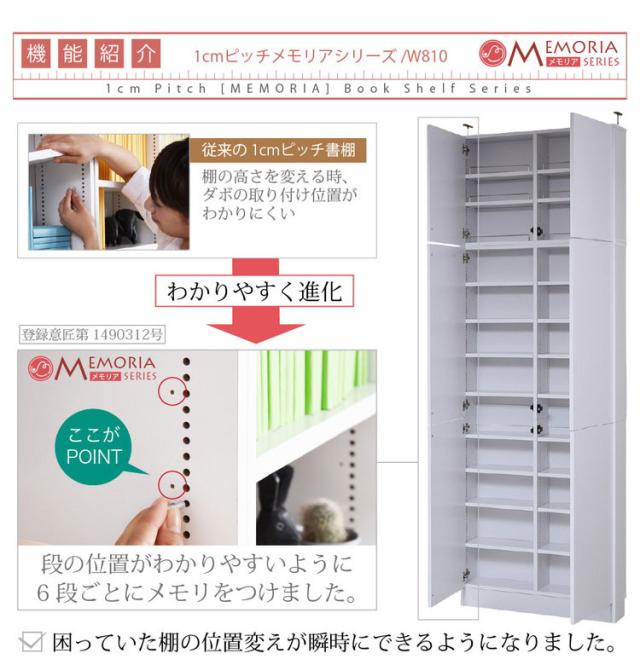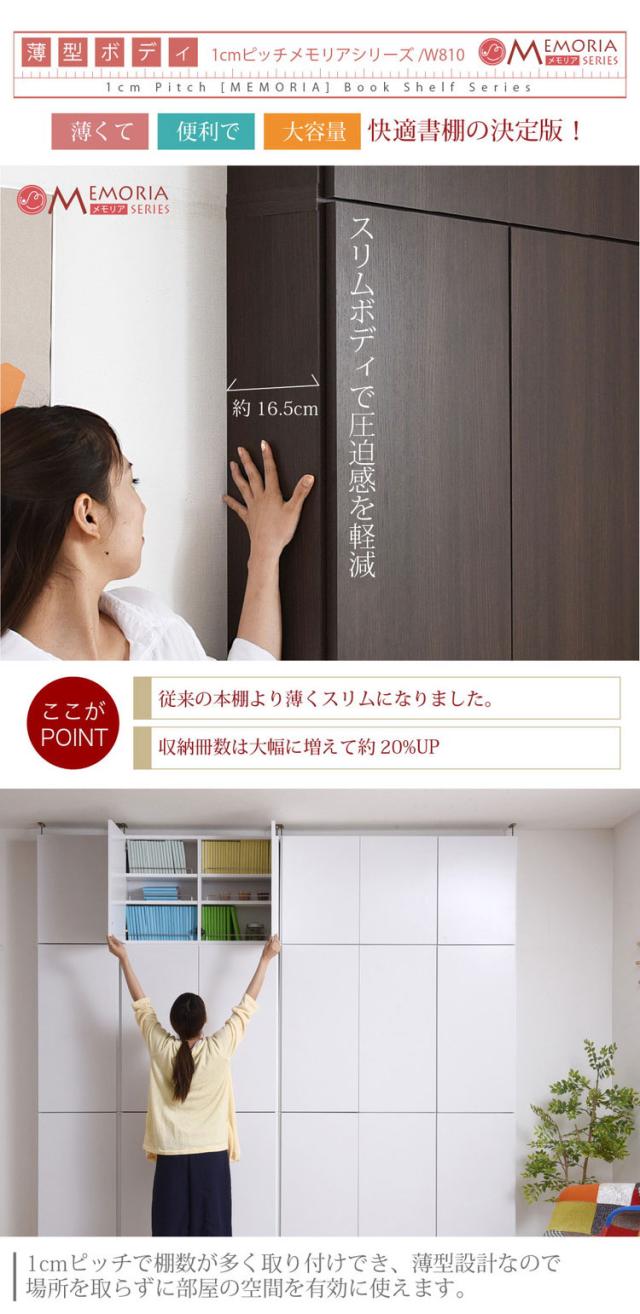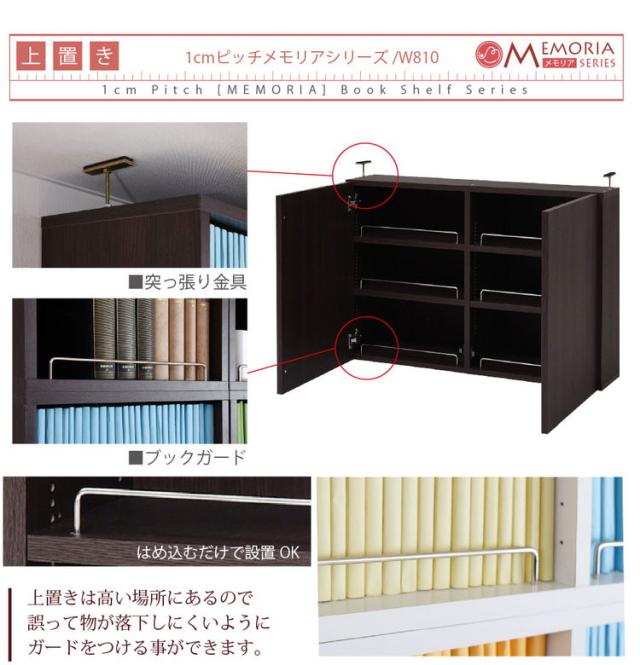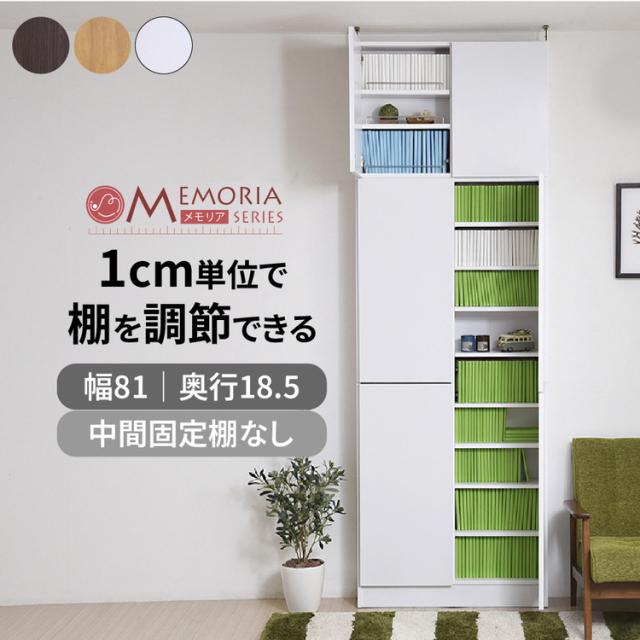 MEMORIA 本棚 薄型 扉付き書棚+上置き 幅81 棚板が1cmピッチで調整できる メモリアシリーズ まるで図書館 スリム 大容量 文庫本 コミック(代引不可)【送料無料】