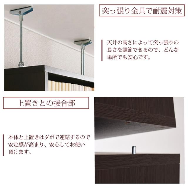 突っ張り上置きセットなので天井まで空間の無駄を省いて大量収納。1cm間隔で棚板が設置でき、固定棚の無い画期的な仕様により、従来よりも自在な棚割りを可能にしました。ラックの中にデッドスペースを作らず、より多くの物が収納できます。薄型だからリビングだけでなく廊下や、狭いスぺースでも収納を確保できます。扉付だから、見せたくないものの収納にも。ミドルなサイズの薄型幅81はリビングにぴったり