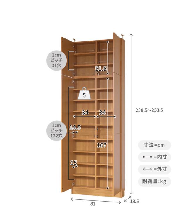 幅81.0×奥行18.5×高さ238.5〜253.5cm