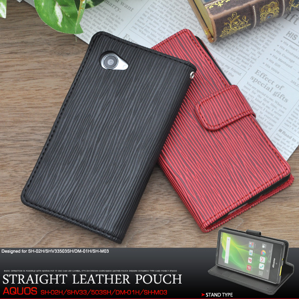AQUOS Compact SH-02H AQUOS SERIE mini SHV33 AQUOS Xx2 mini 503SH DM-01H用 ストレートレザーポーチ 手帳型 カバー