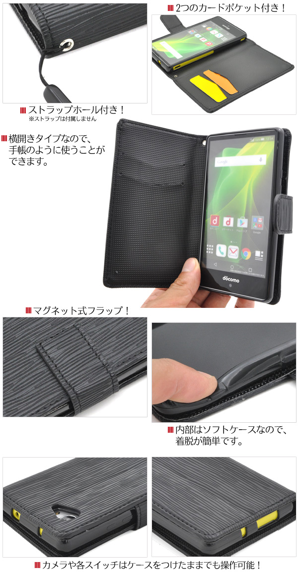 注意 ※本製品はマグネットを使用しておりますのでクレジットカードなどの磁気カードの収納は避け、カードの注意事項をよくご確認の上ご使用ください。 読み取り等ができなくなる恐れがあります。 ※本製品に収納された、カードのデータ等が喪失された場合におきましても、 当社では一切保証致しかねます。 ※長時間接触していたり、強い力で擦れるとスマートフォンに色移りする場合がございます。
