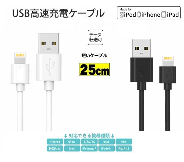 iPhone急速充電ケーブル iPhone14/13/12/XR/X/8/7/6/5ケーブル モバイルケーブル 高品質ケーブル 25cm 充電&データ転送 急速充電 短いケーブル 2A