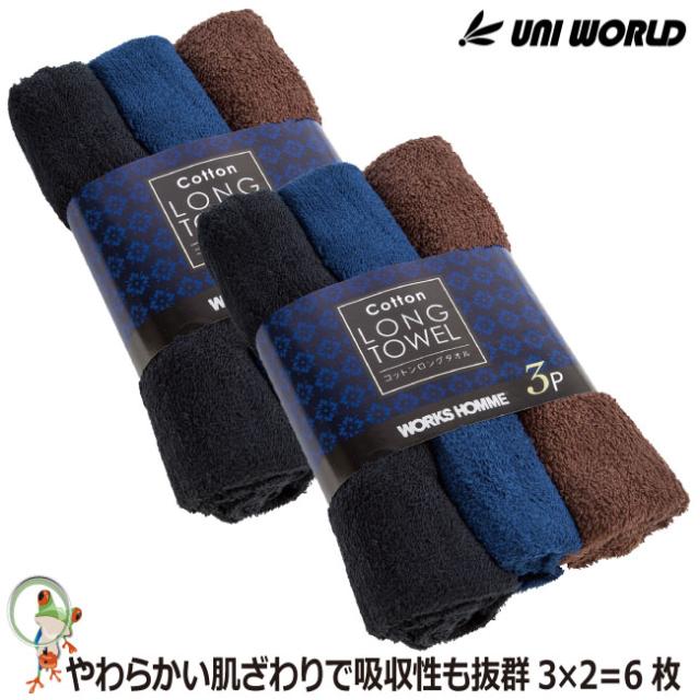 タオル コットンロングタオル3枚×2組 6枚セット しっかり吸汗 お得なタオルセット ダークアソート【アウトドア 現場 ヘルメット スポーツタオルサイズ メンズ レディース】