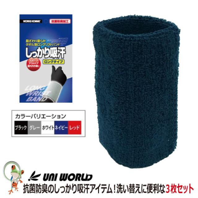 タオル地 ロングリストバンド しっかり吸汗 抗菌防臭 お得な同色3枚セット【アウトドア 現場 ヘルメット】