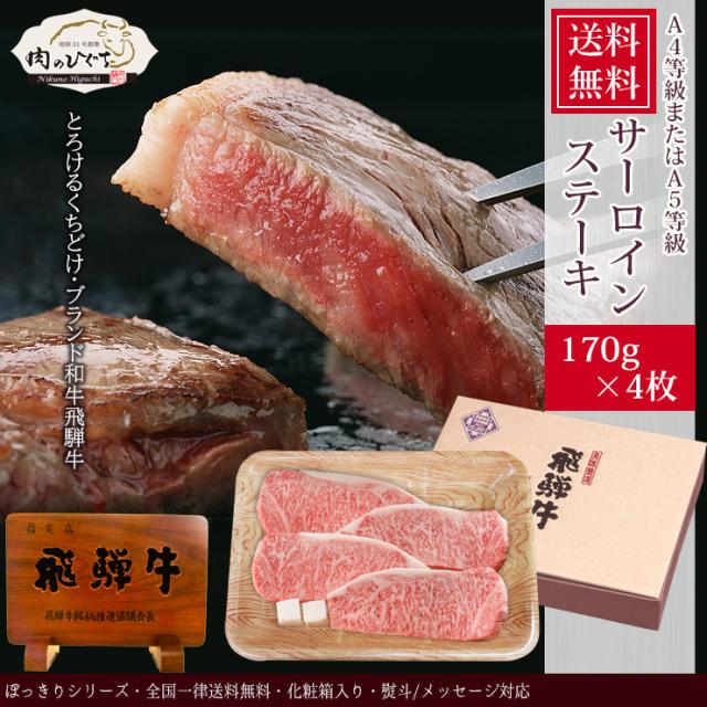 【年内出荷可能】 飛騨牛 サーロインステーキ 170g位×4枚 ステーキ 牛肉 肉 ギフト ステーキ お肉 ぽっきり 和牛 牛 サーロイン プレゼント 化粧箱入 A4等級またはA5等級 黒毛和牛 御祝 御礼 のし可 お取り寄せ 記念日 お祝い 内祝