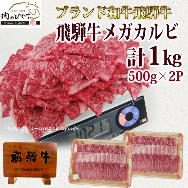 メガ盛 飛騨牛 カルビ 焼肉用 1kg 500gx2 約4〜5人前 肉 牛肉 焼肉 1キロ 黒毛和牛 バーベキュー BBQ おもてなし 焼き肉 おうち焼肉 bbq 送料無料