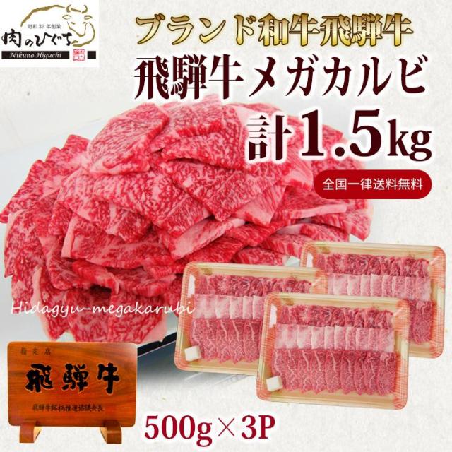 ギガ盛 送料無料 飛騨牛 カルビ 焼肉 1.5kg 500gx3 メガ 黒毛和牛 ブランド牛 牛肉 食材 材料 セット 大人数 肉 バーベキュー BBQ おもてなし 焼き肉 国産 おうち焼肉 かるび bbq メガ盛