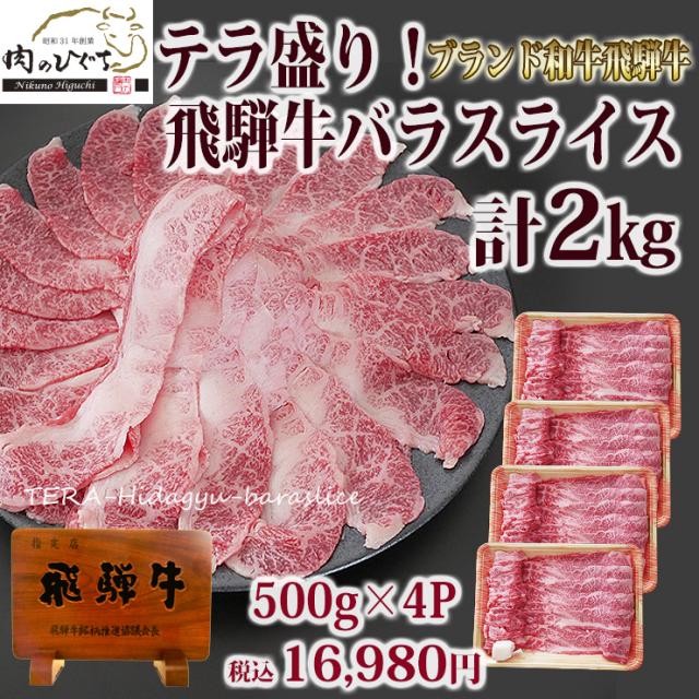 ギガ盛 送料無料 飛騨牛 ばら スライス 2kg 500gx4 メガ 肉 牛肉 ブランド牛 黒毛和牛 鍋 おもてなし すき焼き すきやき しゃぶしゃぶ メガ盛