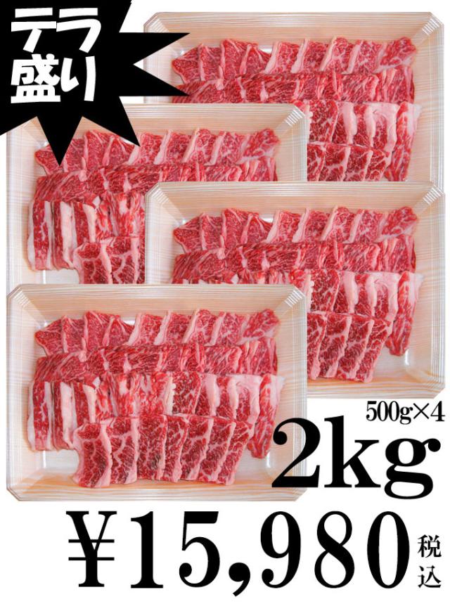 ▲飛騨牛テラ盛りカルビ500g×4パック!送料無料!家族の焼肉、BBQに!!▲