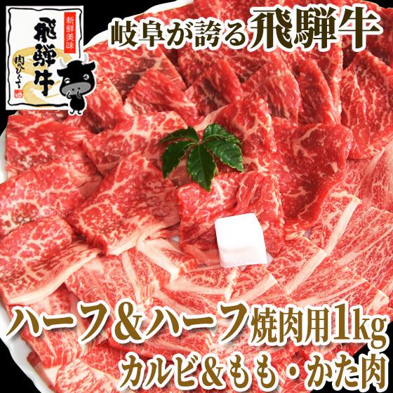 焼肉 バーベキュー ハーフ&ハーフ 飛騨牛カルビ500g &もも・かた焼肉用 500g 肉 牛肉 1キロ 黒毛和牛 バーベキュー BBQ おもてなし 焼き肉 メガ メガ盛 おうち焼肉