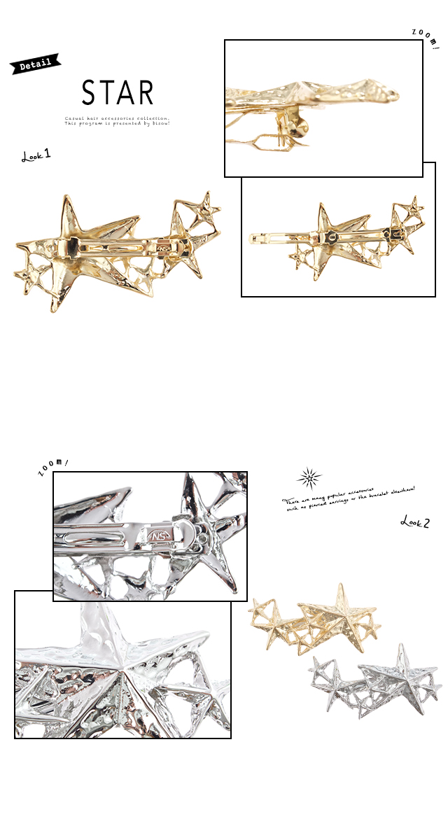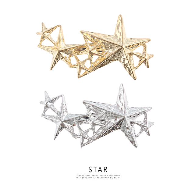【スターモチーフのシンプルバレッタ】星/ゴールド/シルバー/メタル/大人/オフィス/ヘアアレンジ/髪留め/髪飾/ヘアアクセサリー
