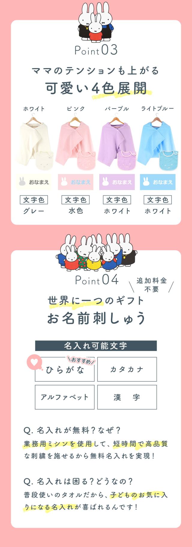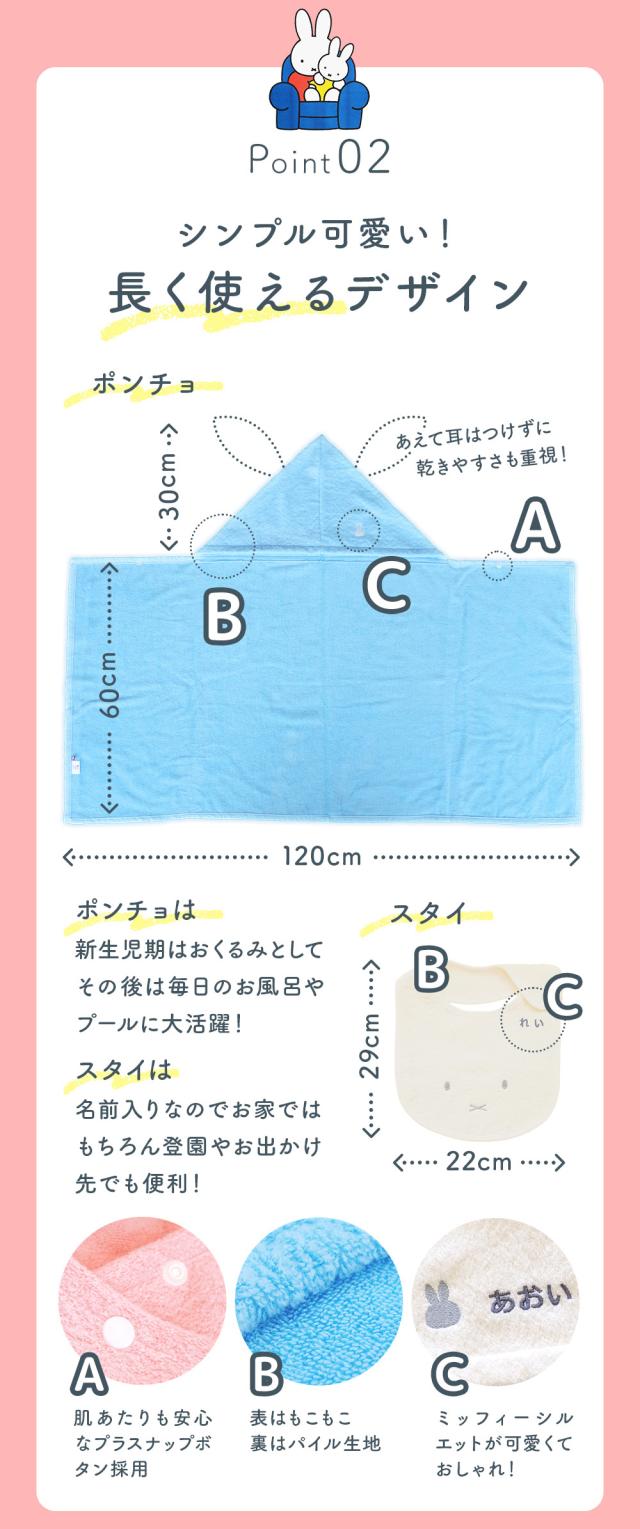 出産祝い 名入れ バスタオル・今治ミッフィーポンチョとスタイ
