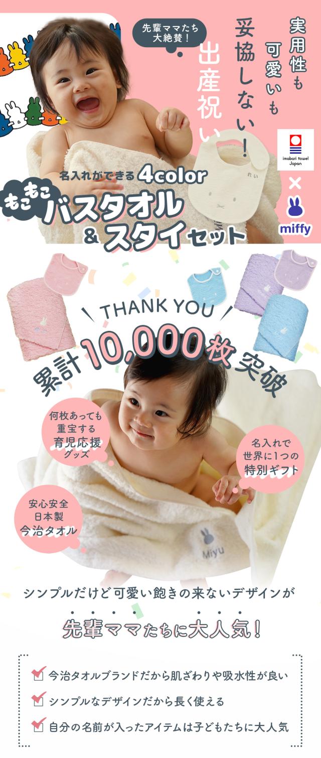 出産祝い 名入れ 男の子 女の子 ベビー 高品質 今治タオル × ミッフィー バスタオル & スタイセット ギフト【名前入り 赤ちゃん おしゃれ プレゼント お祝い 刺しゅう miffy 出産 育児 オリジナル タオルケット ギフトセット ビブ よだれかけ】