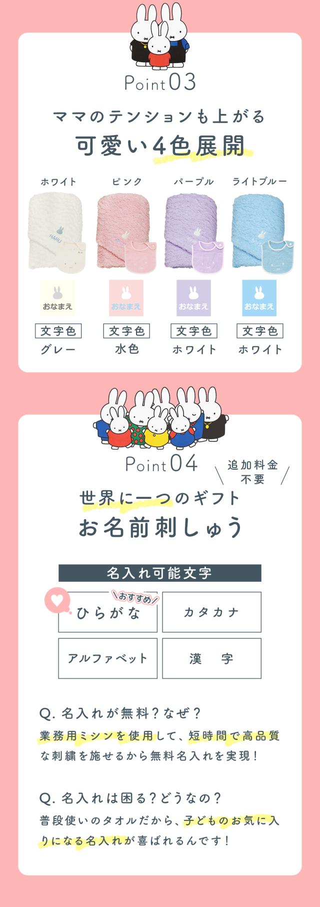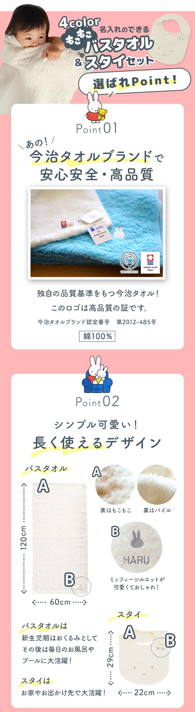 出産祝い 名入れ バスタオル・今治ミッフィーバスタオルとスタイ