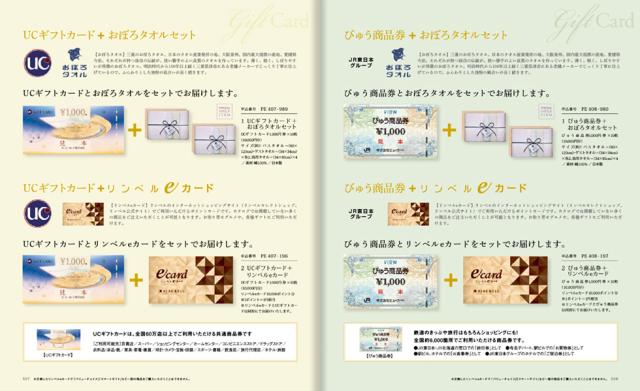 商品券の場合、VJAカード:JCBカード:びゅう商品券:UCカード・いずれか10,000円分+リンベルポイント10,000P