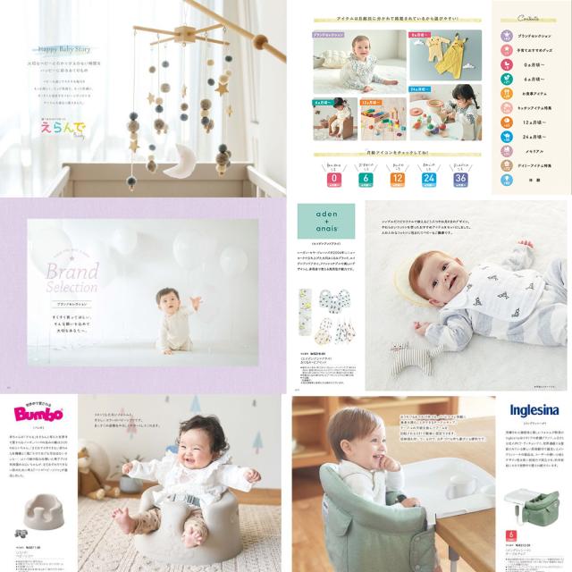 出産祝い カタログギフト 送料無料 えらんでBaby にこにこトリプルチョイス 3つ選べる 包装無料 メッセージカード無料 1歳 2歳 誕生日にも使えるカタログギフト ベビー用品 育児グッズ ベビー服 ママグッズ おまちゃ