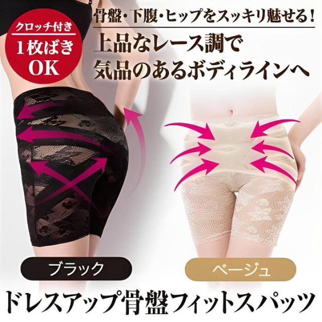 ドレスアップ骨盤フィットスパッツ 2色 着圧 姿勢 矯正 骨盤 下腹 ヒップ レース調 ストレッチ