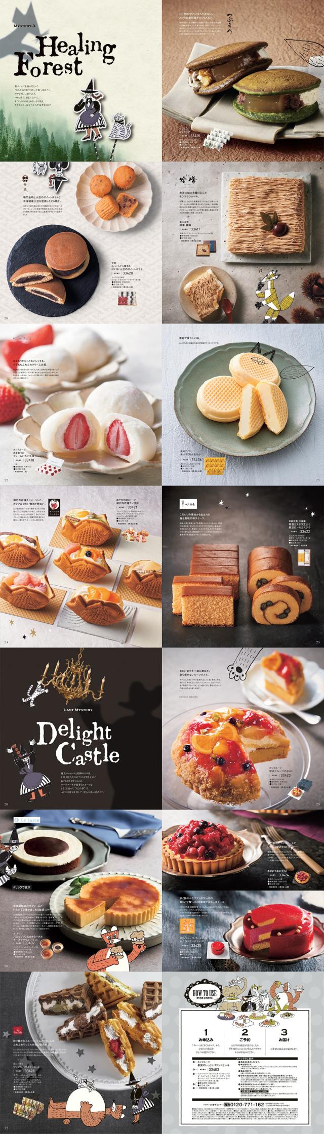 焼菓子、冷たいお菓子、和菓子、パ−ティースイーツを集めたギフトカタログです。