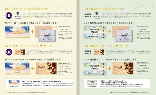 商品券の場合、VJAカード:JCBカード:びゅう商品券:UCカード・いずれか2,000円分+リンベルポイント3,000P