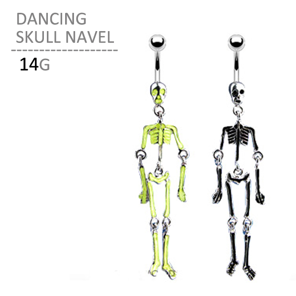 へそピアス ダンシングスカルネイブル 14G ゆらゆら揺れるピアス サージカルステンレス ボディピアス ボディーピアス カーブドバーベル カーブバーベル 髑髏 全身骨格 ドクロ スカル 耳ピアス ヘソピアス ハロウィン ハロウィーン