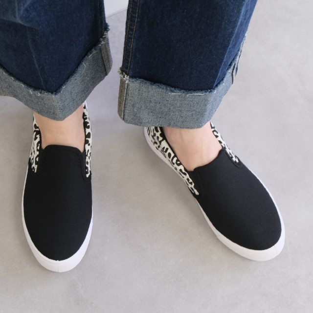 合わせやすいスリッポンは今、1足は持っていたいオシャレアイテム。