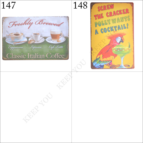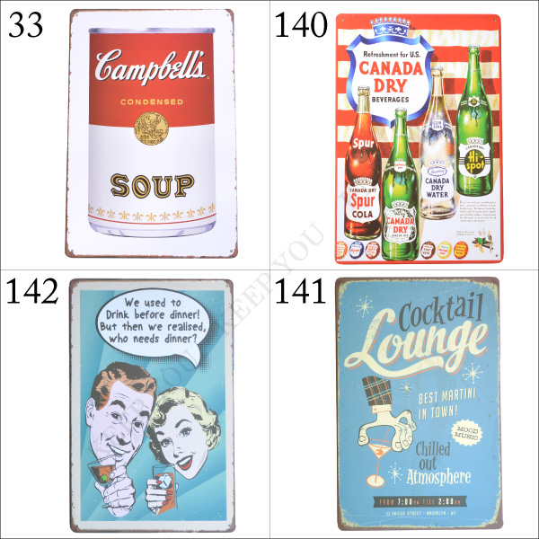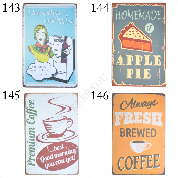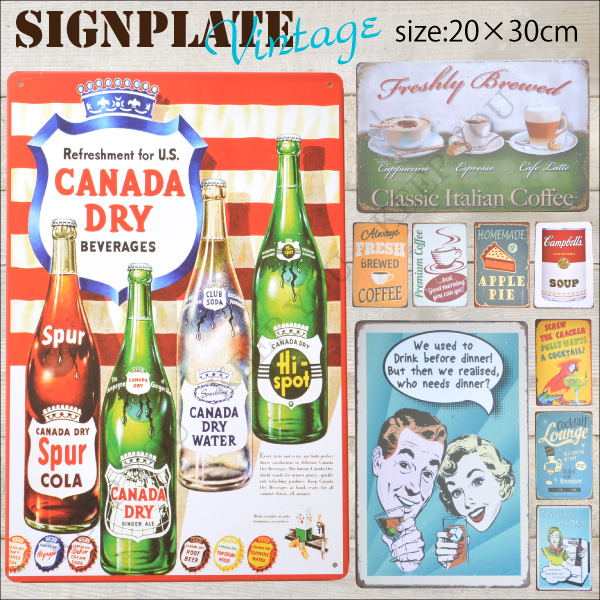 【4枚までメール便280円対応】ブリキ看板 コーヒー ドリンク カクテル フード系 20×30cm ビンテージ サインプレート 033/140〜148┃