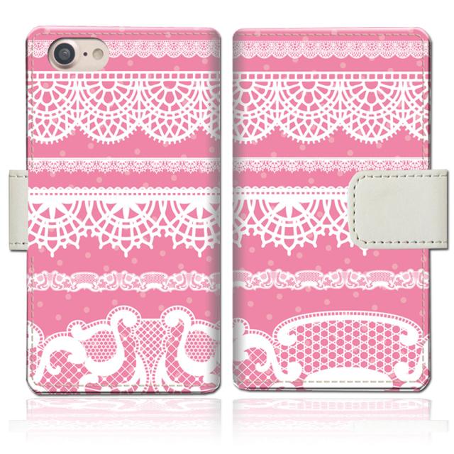 apple iPhoneSE第3世代 iPhoneSE第2世代 iPhone8 iPhone7 共通 ‐ピンキーレースBOADERデザイン - 手帳型 スマホケース 手帳ケース 手帳カバー スマホカバー