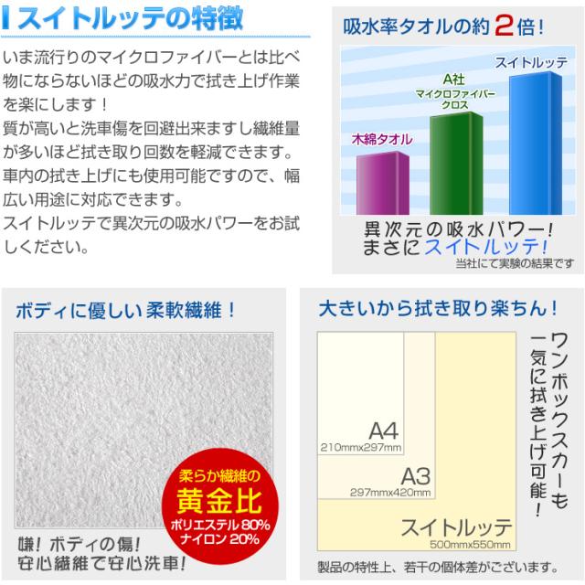 【洗車用拭き上げクロス】スイトルッテ 超吸水 水滴を残さない滑らかな拭き心地 マイクロファイバーとは比べ物にならないほどの吸水力