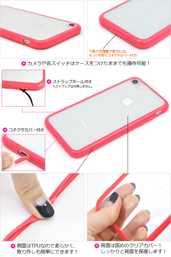 スマホケース iPhone8 iPhone7 iPhoneSE(第2世代 / 第3世代)SE2 SE3 第二世代 第三世代 カラーバンパー クリアケース 無地 クリア 透明 スマホ カバー アイフォン 保護 傷防止 着脱簡単 カラーバンパー コネクタキャップ 人気 定番 シンプル アレンジ 送料無料