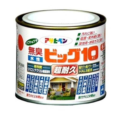 | ●特殊フッ素樹脂、反応硬化型シリコン変性アクリル樹脂、紫外線劣化防止剤(HALS)の相乗効果により、汚れにくく、耐久性が格段にすぐれた高性能塗料です。●白系塗料には自動車用にも使用されている高性能二酸化チタンを使用しています。●いやな臭いのしない無臭タイプで、1回塗りで仕上がります。●サビドメ剤、防カビ剤を配合していますので、サビやカビの発生を防ぎます。●厚塗りしてもタレにくく、たいへん塗りやすい塗料です。 ●フッ素樹脂配合・汚れにくい ●サビ止め剤配合・サビを防ぐ●カビ止め剤配合・カビを防【注意事項】●うすめ方:塗りにくいときは水(5%以内)でうすめて下さい。●乾燥時間:夏期/30分〜1時間 冬期/2〜3時間。●標準塗り面積:【1回塗り】 1/5L 1.4〜1.9平米 (タタミ0.9〜1.2枚分) /0.7L 5.0〜6.6平米 (タタミ3〜4枚分)1.6L 11〜15平米 (タタミ6〜9枚分) /5L 36〜47平米 (タタミ21〜28枚分) 10L 71〜94平米 (タタミ42〜56枚分) |