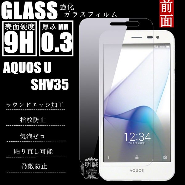 【2枚セット】au AQUOS U SHV35 強化ガラス保護フィルム 保護フィルム 送料無料 ガラスフィルム 前面保護フィルム 強化ガラス