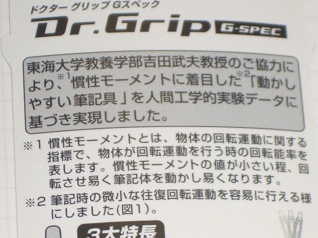 長時間の筆記にも疲れにくいDr.グリップ…細かい文字がきれいに書ける極細0.5mm油性ボールペンです。