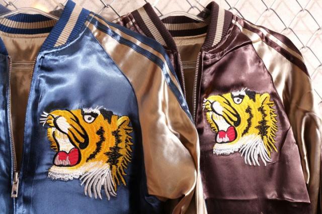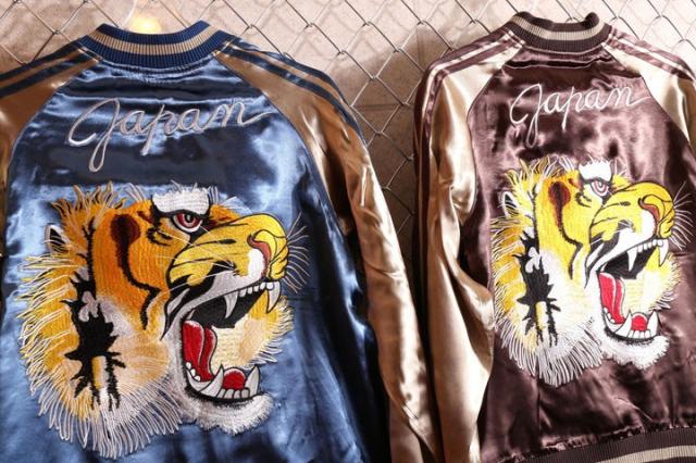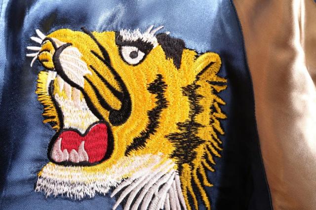 バック一面に落とし込まれた虎頭が迫力満点のスカジャン。