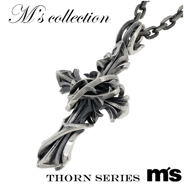 ソーンシリーズ Bramble Cross ラージクロスシルバーネックレス(チェーン付)【エムズコレクション】送料無料/メンズ ネックレス ブランド msコレクション