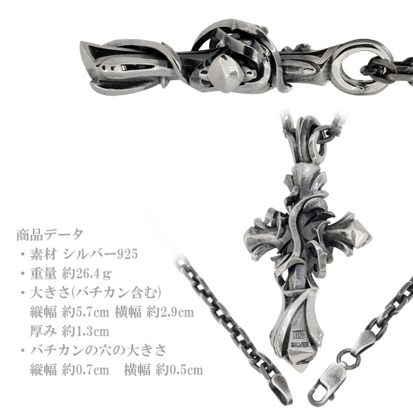 シルバー925 メンズ ネックレス Mens Necklace クロス 十字架 茨 イバラ ソーン thorn 棘 トゲ ハード