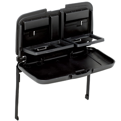 ●ヘッドレストが外れない車種にもご使用できるコンパクトで大変便利なリアシート用トレイです。