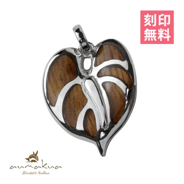 ハワイアンジュエリー コアウッド ペンダントトップ 刻印無料 モンステラ シンプル シルバー925 ロジウムコーティング ネックレス チェーン別売 ペンダントヘッド メンズ レディース 誕生日 プレゼント 入学式 就職 お祝い 新生活 【品番:042-61-01】