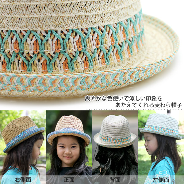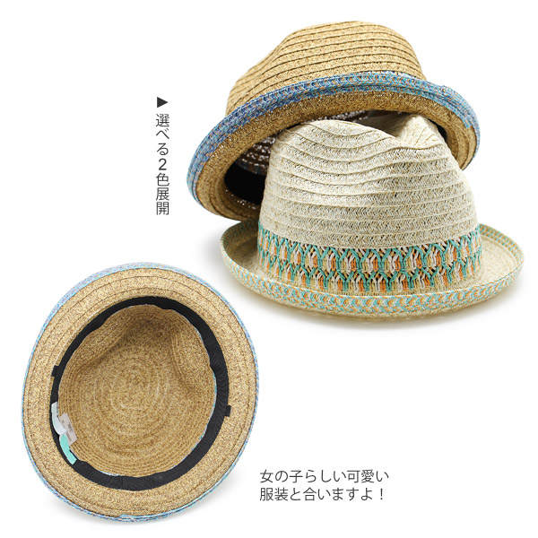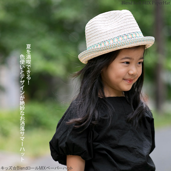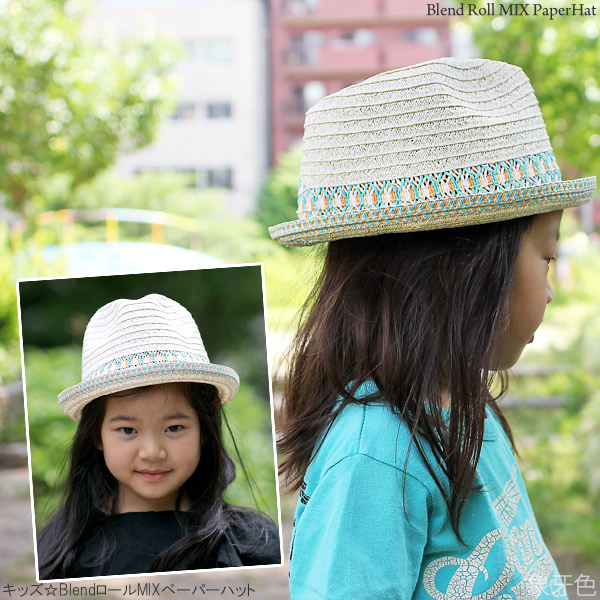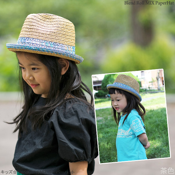 麦わら帽子 キッズ ハット 子供 HAT ペーパー 子供用 春夏 女の子 / キッズ BlendロールMIXペーパーハット