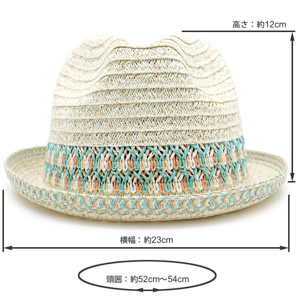 | サイズ | サイズ表記52〜54cm(頭囲:約52〜54cm[マジックテープでサイズ調整可能]、高さ:約12cm、横幅:約23cm[つばも含む]、つばの長さ:約4.5cm) |