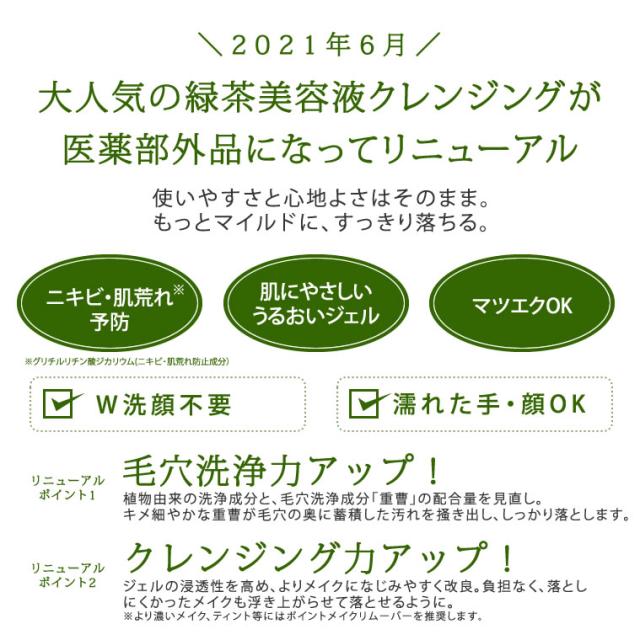 W洗顔不要!濡れた手や顔OK!まつエクOK!大人気の緑茶美容液クレンジングジェルが医薬部外品になってリニューアル!
