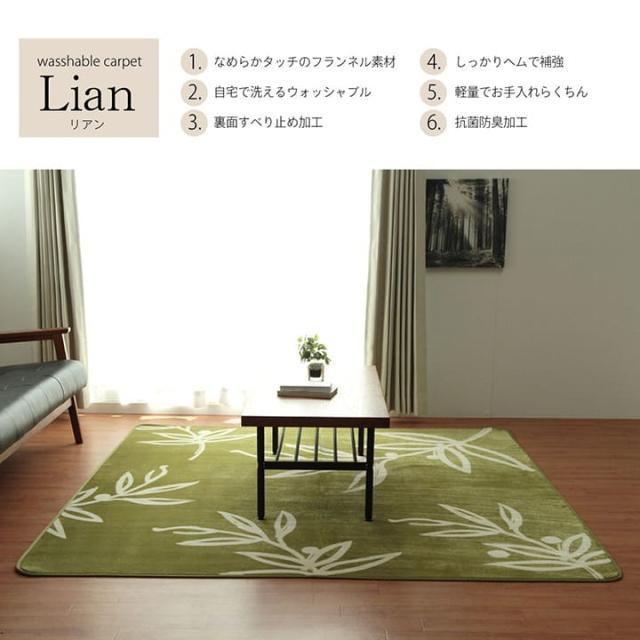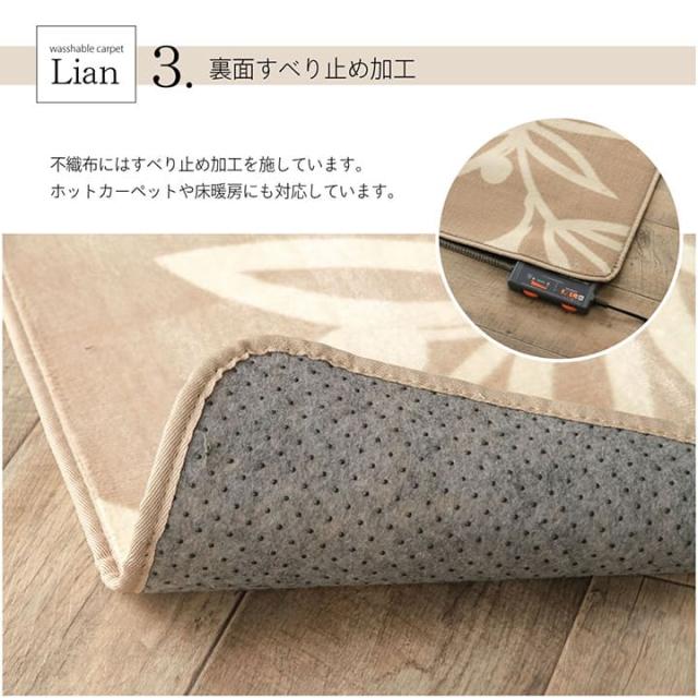 ラグマット 3畳 ラグマット 3畳 洗える オールシーズン「WSリアン」 ラグマット ラグ カーペット 滑り止め付き 200×250cm カーペット ホットカーペットカバー リーフ柄