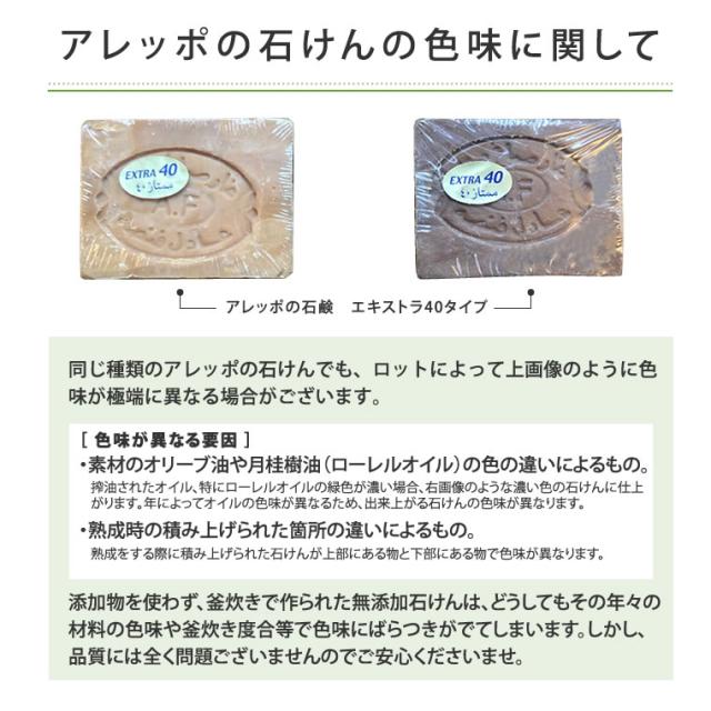 | 輸入販売元 | 株式会社アレッポの石鹸 |