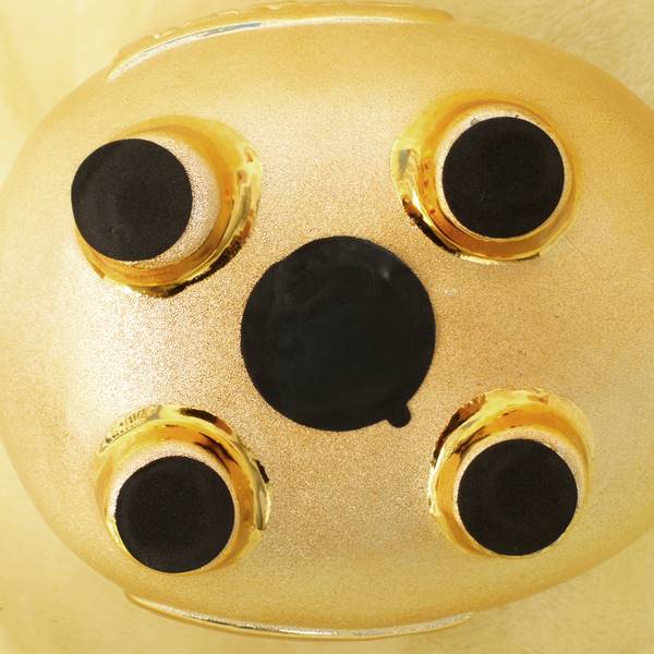 金沙仕上げと言う少し上質な作りの金豚貯金箱です。側面にはおなじみ【招財進寶】の組み文字、背面には招財の古銭マークが刻まれています。