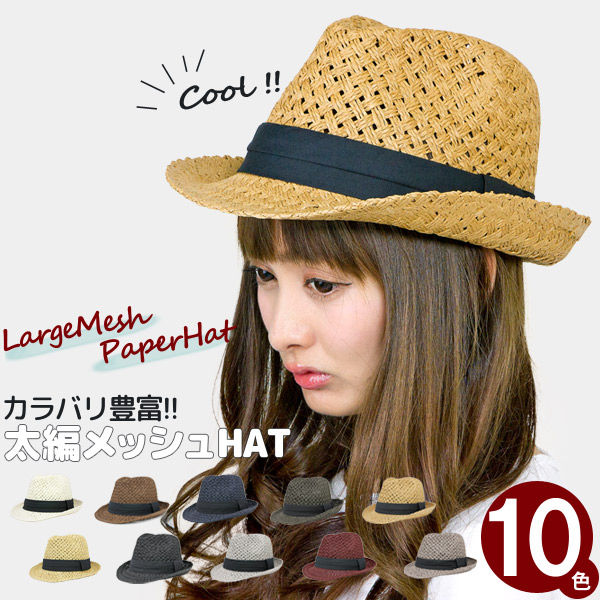 ハット メッシュ 麦わら帽子 レディース メンズ 春夏 中折れ HAT / LargeMeshペーパーハット
