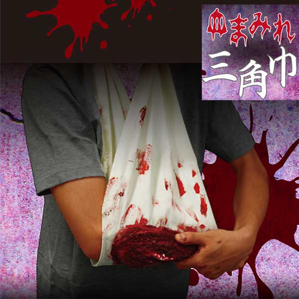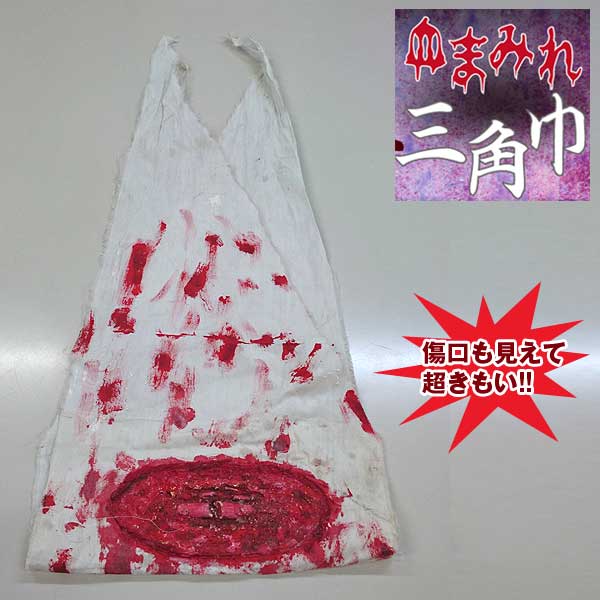 噴出した血がいっぱい付いた雰囲気が、超不気味な三角巾です。