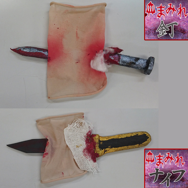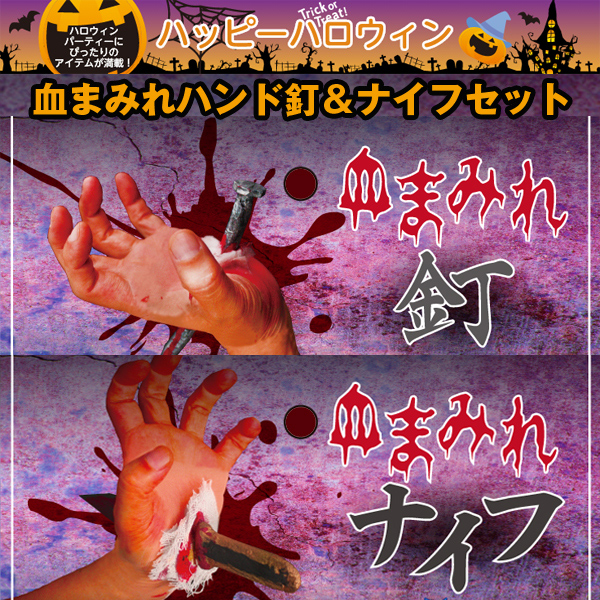 血まみれハンド釘&ハンドナイフセット(ハロウィングッズ,仮装グッズ,変装,パーティー,コスプレアクセサリー)
