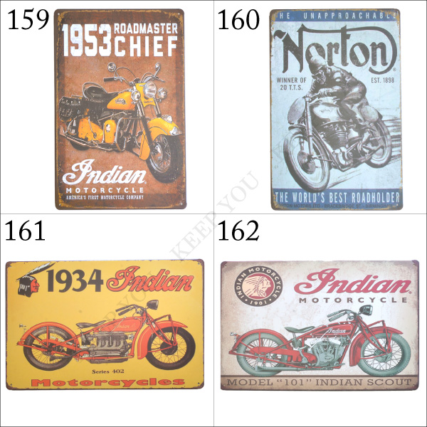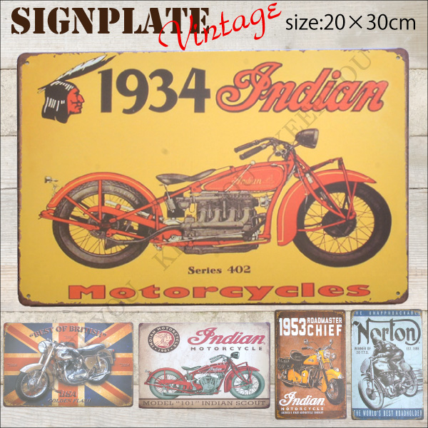 【4枚までメール便280円対応】ブリキ看板 バイク MOTORCYCLE 20×30cm ビンテージ メタルサインプレート インテリア 159〜163┃